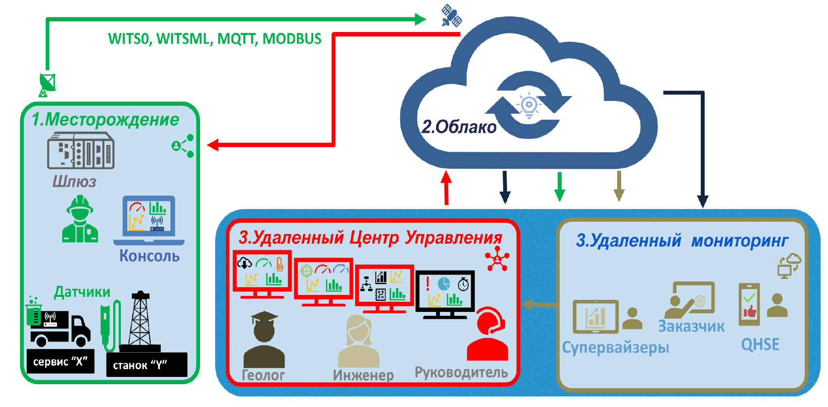 «Передача данных в режиме реального времени в то место или момент, когда необходимо принять решение. Помогает координировать деятельность различных игроков, особенно сервисных компаний и поставщиков продукции, которые обычно взаимодействуют при бурении. Понимание данных, поступающих с месторождения, необходимо для наклонно-направленного бурения и увеличения вероятности успеха».