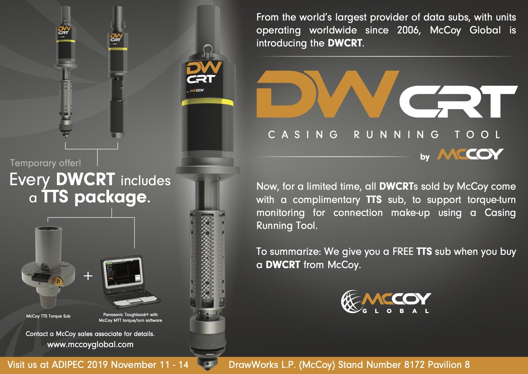 В связи с приобретением компании DrawWorks, о чем ранее было сообщено в новостях ROGTEC, и расширением производства Инструмента для спуска обсадных колонн DrawWorks Casing Running Tool (DWCRT) корпорация McCoy объявила о беспрецедентной акции по продвижению DWCRT: