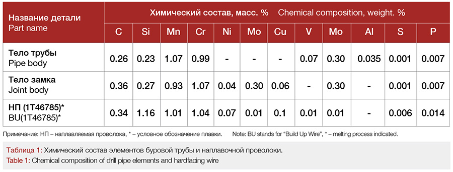 При производстве сварочных работ по удлинению замкового соединения наплавляемый слой перекрывает участки сварки трением и ЗТВ (зона термического влияния) на высаженной части трубы и замка. Влияние наплавки на основной металл и сварной шов, в данном случае, недостаточно изучено.