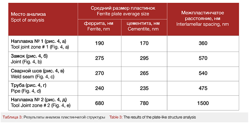 В результате электронно-микроскопических исследований получены следующие данные о структуре, рис. 4, табл. 3.