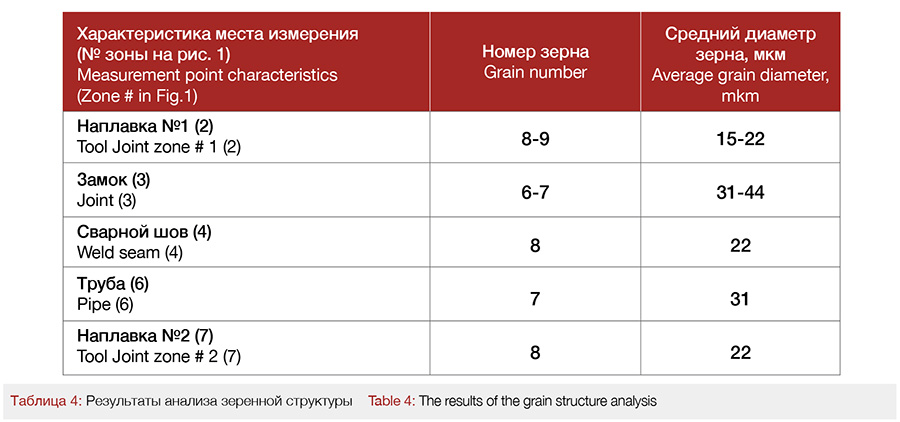 Величина среднего действительного размера зерна варьируется в узком интервале от 15 мкм в зоне поверхности наплавки до 44 мкм в зоне основного материала, табл. 4. Результат хорошо согласуется с данными механических испытаний.