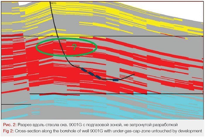 При разработке залежей с высокой вертикальной неоднородностью для увеличения связанности коллектора обычно применяют многостадийный гидроразрыв пласта (МГРП), но, как правило, он проводится в нижних прослоях для избежания распространения трещины в газовую шапку. Это приводит к тому, что подгазовая часть нефтенасыщенного коллектора остается незатронутой разработкой (рис. 2).