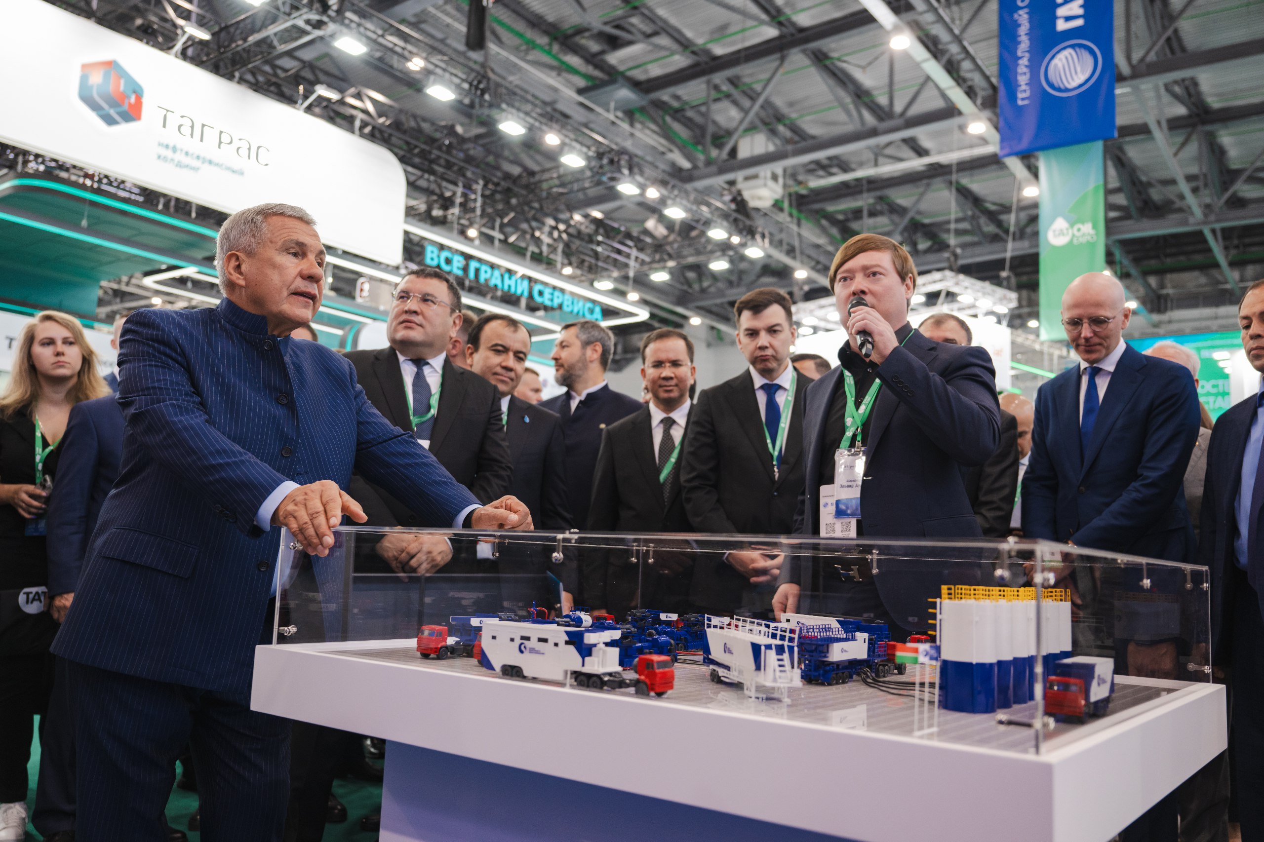 в рамках ежегодного Татарстанского нефтегазохимического форума, посвященного Году научно-технологического развития в Республике Татарстан. На выставке ГК ТатПром-Холдинг презентовала новые технологии и сервисные услуги Раису Татарстана Рустаму Минниханову и членам официальной правительственной делегации.