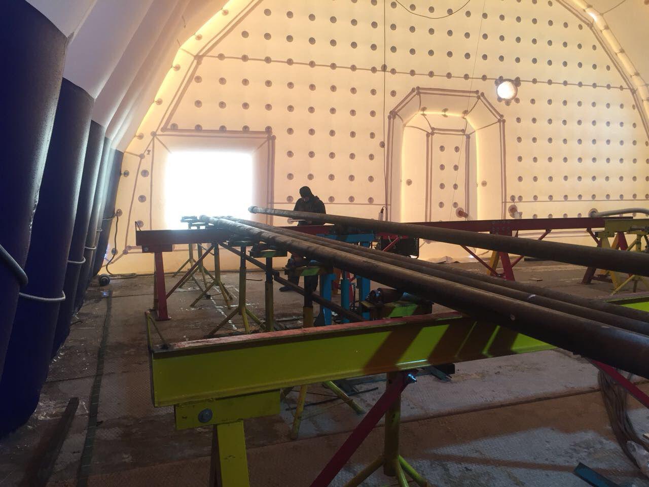 На данном проекте перед нашей компанией поставлена ответственная задача обеспечить оперативный ремонт, фосфатирование и свинчивание резьбовых соединений API и Премиум соединений, таких как Valloureс VX, EIS, DS в суровых условиях автономного месторождения.».