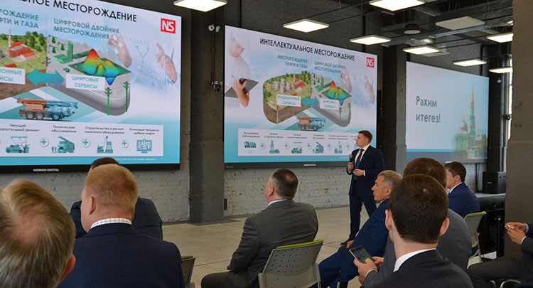 Второе представленное направление «Интеллектуальное месторождение» — глобальный взгляд на нефтедобывающее производство с точки зрения строительства целой экосистемы. Один из важнейших элементов решения — создание Цифровых двойников (моделирование объекта с учетом различных характеристик и технологическим сопровождением разработки месторождения), и в этом направлении ООО «Нефтьсервисхолдинг» уже сотрудничает с ПАО «Татнефть». Инновационный подход позволяет определять оптимальные режимы работы скважин и «узкие» места, найти потенциал повышения объемов добычи месторождения и полностью управлять выполнением плана, достоверно прогнозируя возможности увеличения проектного фонда скважин в рамках существующей системы сбора и транспорта добываемой продукции месторождения.