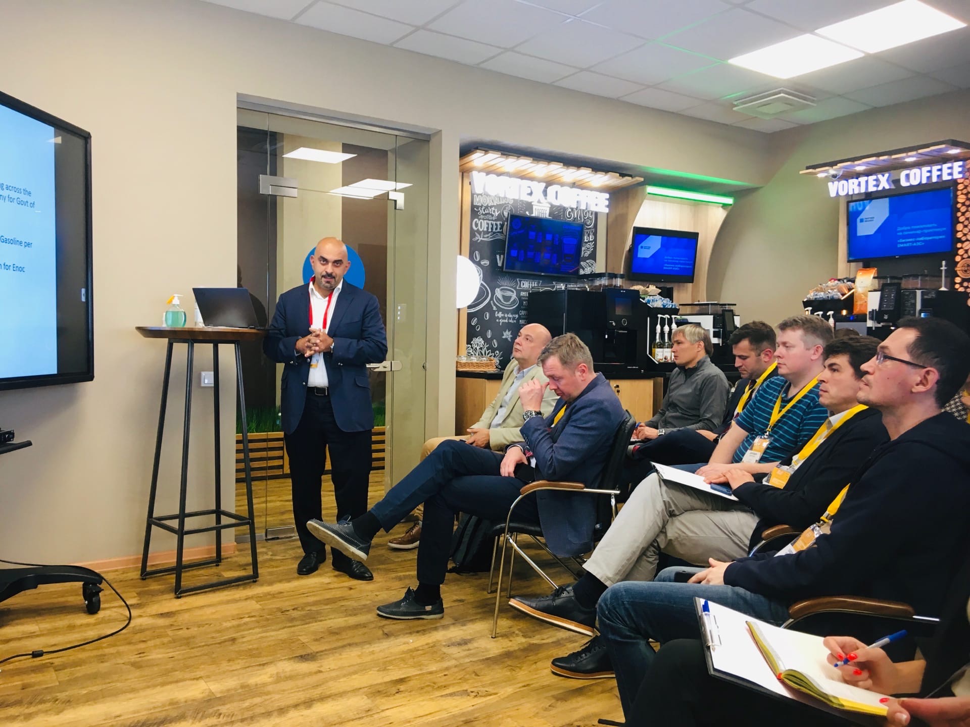 Программа продолжилась выступлением Михаила Бакунина Бизнес-консультанта, специалиста по стратегии и оптимизации процессов в кофейном бизнесе ООО «Когио». Михаил выступил с докладом «Система оптимизации процессов в кофейном бизнесе АЗС: как и над чем работать». Олег Ковалев Председатель комитета по инновациям «Деловой России» продолжил развивать тему кофейного бизнеса и выступил с докладом «Воркшоп: готовая система мотивации персонала для повышения продаж кофе». Заключительным спикером выступил Евгений Коротин Генеральный директор Центра технологий конкуренции с докладом «Инновационные точки роста эффективности продаж на АЗС».