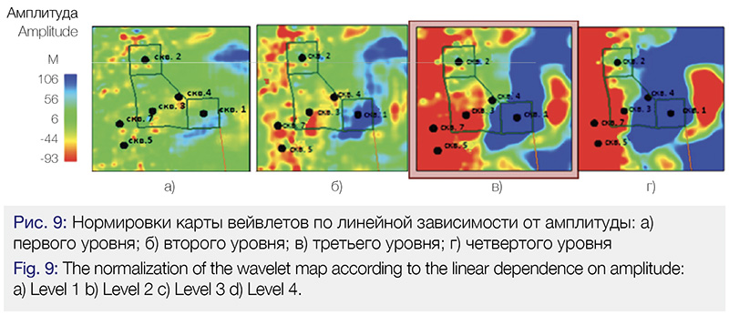 Моделирование проницаемости осуществлялось на основе нормировки карты вейвлетов третьего уровня по линейной зависимости от амплитуды (Рис.9):