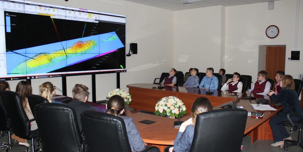 Начальник Отдела геолого-технологического моделирования морских месторождений Наталья Денисова познакомила гимназистов с особенностями поиска, разведки и разработки нефтегазовых месторождений; информационно-технологическим обеспечением проектов; спецификой построения и анализа 3D-геолого-гидродинамической моделей, с помощью которых осуществляется мониторинг и принимаются производственные решения в процессе разработки месторождений, в т.ч. при реализации морских проектов на континентальном шельфе Каспийского моря (месторождения имени Ю.Корчагина и имени В.Филановского).