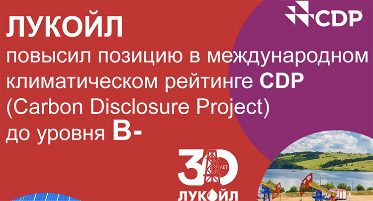 ПАО «ЛУКОЙЛ» сообщает о повышении позиции в международном климатическом рейтинге CDP (Carbon Disclosure Project) на одну ступень до уровня B-.