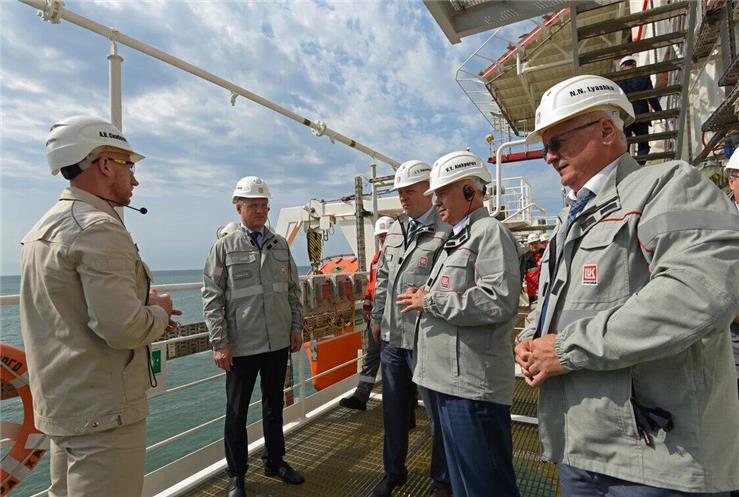 Сегодня морской ледостойкий стационарный комплекс (МЛСК-1) на месторождении имени Владимира Филановского в Каспийском море посетили Министр энергетики РФ Александр Новак, Президент ПАО «ЛУКОЙЛ» Вагит Алекперов и глава Астраханской области Игорь Бабушкин.