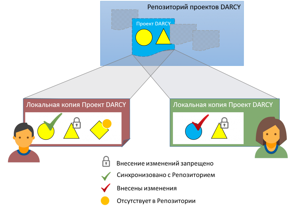 Рисунок 2 – Иллюстрация одновременной работы над проектом через репозиторий DARCY™