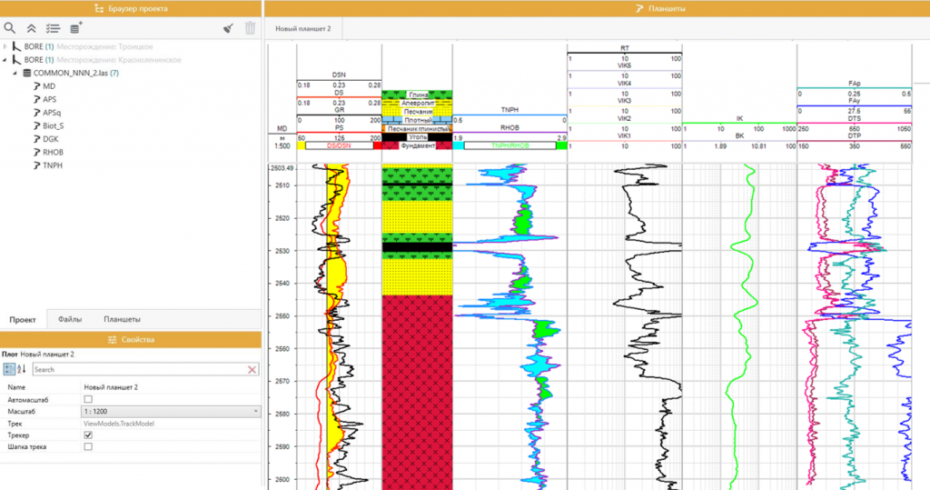 Предусмотрена работа с самыми распространенными промышленными форматами (LAS 1.2-3.0, LIS, DLIS, TXT, CSV, XLS, XML и др.), а инструмент потоковой загрузки и подготовки данных позволяет быстро формировать рабочий проект.