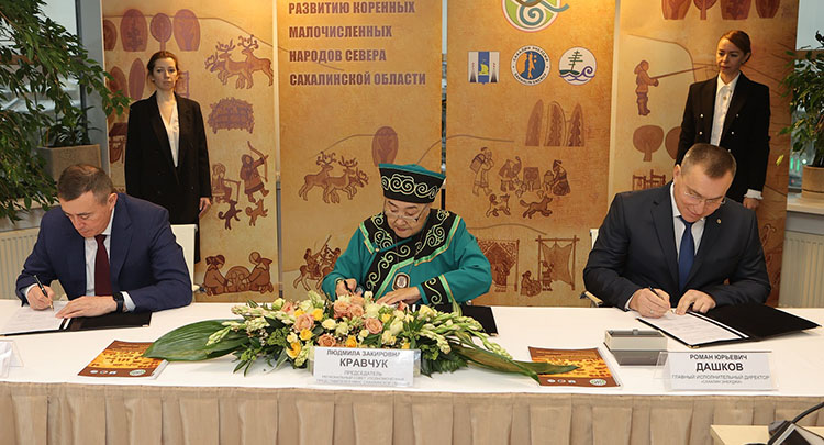 15 декабря в Москве губернатор Сахалинской области Валерий Лимаренко, главный исполнительный директор «Сахалин Энерджи» Роман Дашков и председатель Регионального совета уполномоченных представителей КМНС Сахалинской области Людмила Кравчук подписали соглашение о реализации четвертого пятилетнего Плана содействия развитию коренных малочисленных народов Севера Сахалинской области