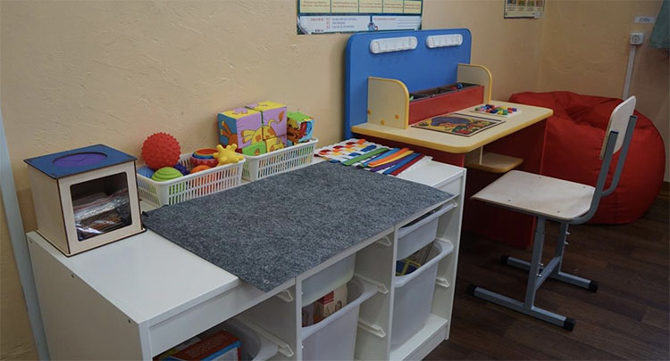 На средства гранта закуплены мебель и средства релаксации: кресло-капля, которая принимает форму тела ребенка и помогает ему расслабиться, зрительный тренажер и бизиборд – учебный стенд с разными бытовыми предметами. Также среди приобретений – световой планшет для рисования песком, игры и пособия для познавательных и развивающих занятий.