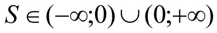Согласно этой формуле, S может принимать значения от минус бесконечности до нуля и от нуля до плюс бесконечности т.е.