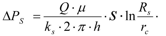 — числовое значение скин-фактора S показывает долю ухудшения естественной проницаемости пласта и не имеет логарифмическую природу (логарифм под знаком s является результатом исторической ошибки);