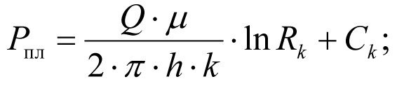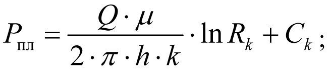 при r = Rк , получим пластовое давление т.е. Р=Рпл