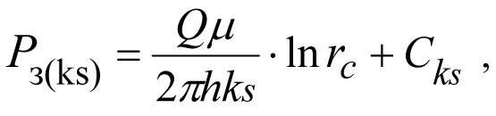 Падение забойного давления в результате нарушения проницаемости в скин-слое от k до ks составит (1.13)