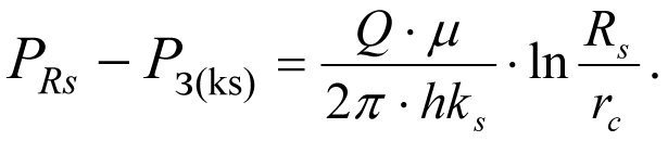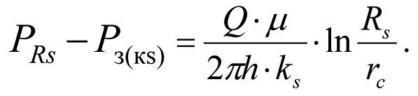Подставив в общую формулу (1.4) вместо k значение ks, r = rc и r = Rs, при r = rc, будем иметь забойное давление