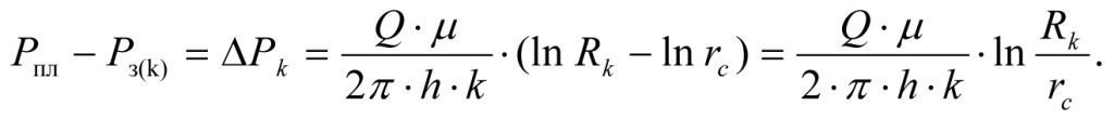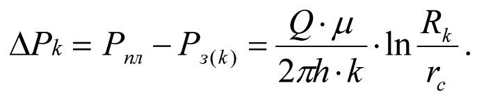 где Рпл – пластовое давление, а Рз(к) – давление у стенки скважины (забойное давление) при естественной проницаемости k пласта.