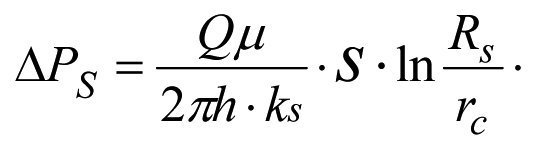 Так как снижение притока жидкости в скважину пропорционально скин-фактору, введем обозначение
