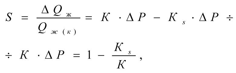 Уравнение притока жидкости Qж при значениях продуктивности К и Кs, запишем в виде
