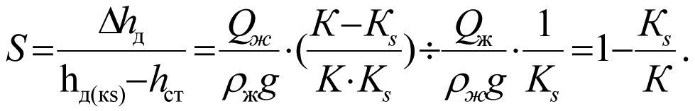 Падение динамического уровня на величину ΔhД пропорционально скин-фактору S, введем обозначение