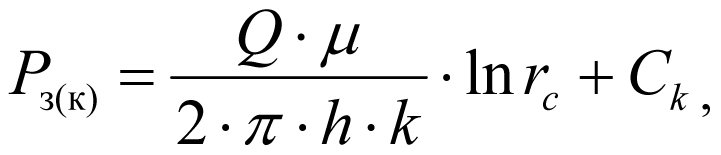 а при r = rc, получим забойное давление т.е. Р=Рз(k),