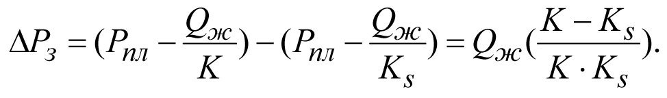 При постоянстве отбора жидкости ухудшение продуктивности пласта от К до Кs приводит к падению забойного давления от Рз(к) до Рз(кs).