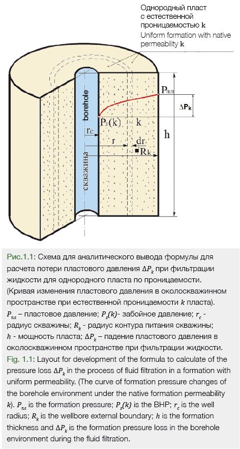 без принадлежности области определения, существования и практического использования. Известно, если функция стремится к бесконечности, она практического применения не имеет. Формулы (1*) и (2*) не пригодны для определения ΔРs, S и других базовых параметров, входящих в систему и должны быть исключены из учебников и учебных пособий подземной гидродинамики. Параметры ΔРs и S имеют важное значение и входят в состав формулы всех базовых гидродинамических параметров системы зонально-неоднородного пласта. В связи с этим в данной работе в четырех вариантах приводится вывод формулы для расчета значения ΔРs и в пяти вариантах приводится вывод формулы для расчета значения скин-фактора S.