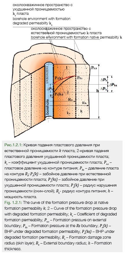 Скин-фактор – комплексный параметр, отражающий интегрально все виды механизмов нарушения коллектора, влияющих на ухудшение проницаемости и пористости околоскважинного пространства продуктивного пласта и на снижение притока пластовой жидкости.