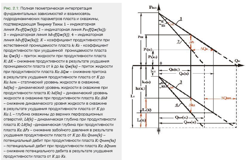 «Теорема Тима» гласит, что «Любые изменения проницаемости продуктивного пласта приводят к пропорциональному изменению его продуктивности, гидропроводности, забойного давления, динамического уровня жидкости, текущего притока и потенциального дебита, а безразмерные относительные их величины равны между собой».