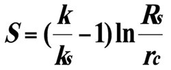 Таким образом, в формуле (1), предложенной V.Everdingen A.F.и Hurst N.(1949) для определения ΔРs не соблюдены физические законы гидродинамики пласта, нарушена математическая логика и допущены указанные серьезные ошибки. Hawkin M.F.(1956), используя (1), предложил для расчета S формулу: