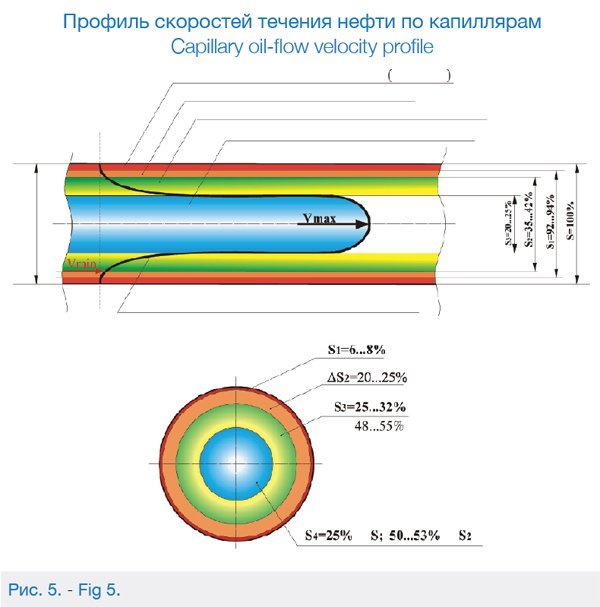 Слою Гельмгольца δ соответствует неподвижный пристенный (твердый) слой – абсолютно не извлекаемая часть нефти. По объему этот слой составляет 6…8% от геологических запасов и полностью входит в объем балансовых запасов.