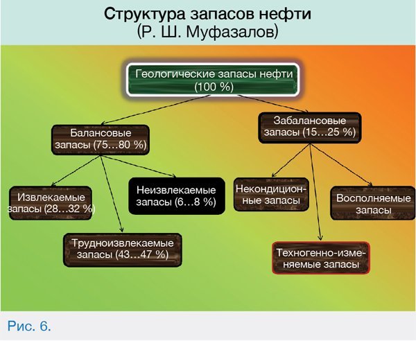 В структурных запасах (рис.6) объемы нефти высоковязкой малоподвижной прослойки и переходного слоя объединены и процентные соотношения указаны от доли балансовых запасов.