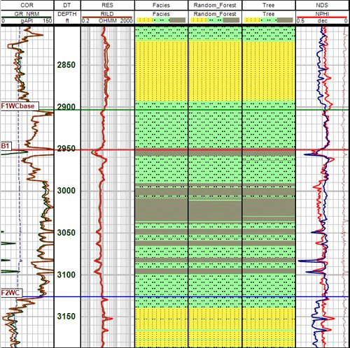 Machine learning-based facies predictions using 50-well training data set (image courtesy of CGG GeoSoftware)