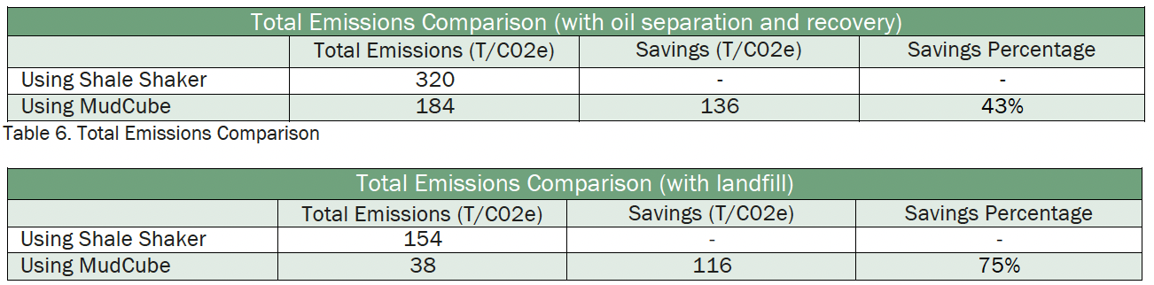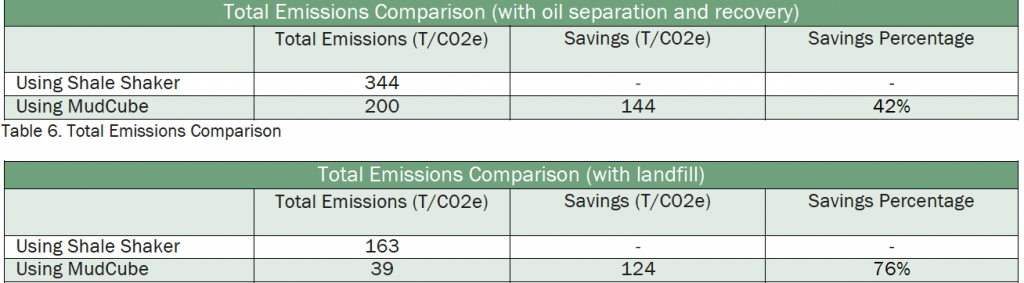 The report also calculated that the reduction in waste treatment emissions through the MudCube when landfilled would be 75% onshore and 76% offshore compared to shale shakers and that there was a 35% reduction in actual waste.