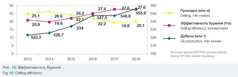 Advances in horizontal drilling are, in many ways, determining the fundamental changes in the industry’s overall structure, and by region in particular. We started to see that West Siberia’s share increased in 2018, while production drilling and oil output started growing again in 2016 and 2017 respectively.