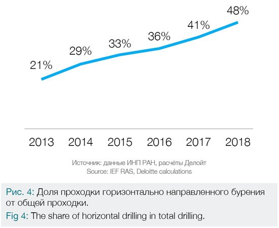 The share of horizontal drilling in total production drilling rose from 21 percent to 48 percent in 2013-2018, this growth reflects global developments in the drilling segment. However, this trend is widely expected to fizzle out in the coming years.