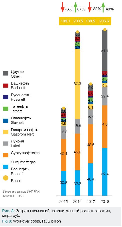 The companies spent a combined RUB 206.5 billion on workover. Most of the growth was due to rising repair costs at Yamal LNG (accounting for 22 percent of the total).