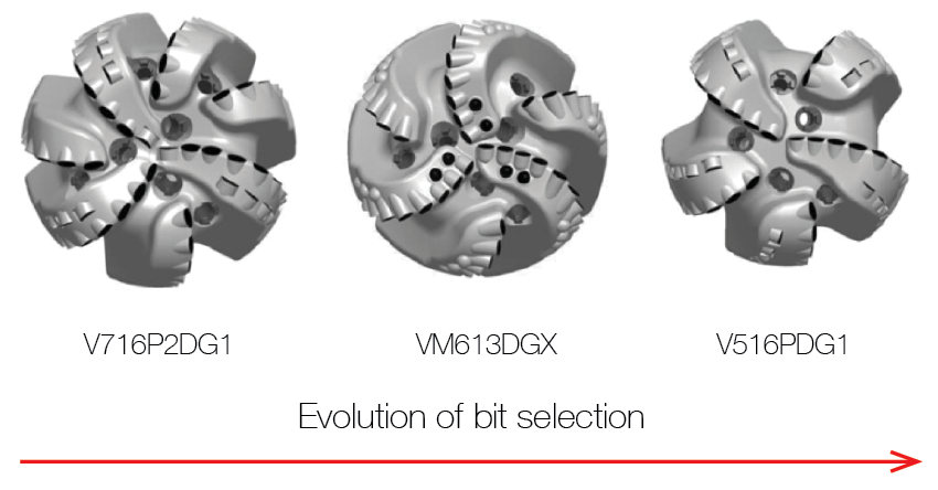 Drilling the 8 ½” section with matrix PDC from competitors they were averaging 9 m/hr, with the current 6 bladed, 13mm design bit V613DG1HX the customer now averages around 40 m/hr.