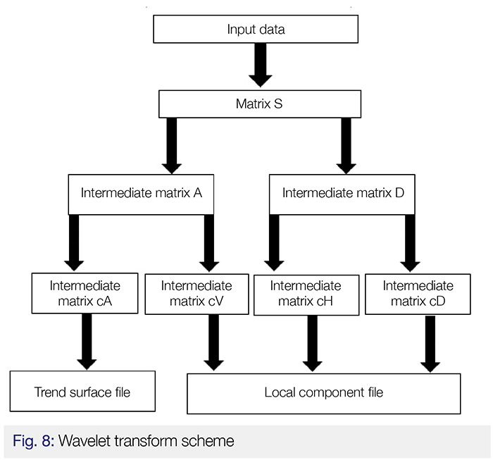 In our case, the algorithm of the matrix wavelet decomposition can be displayed using the following scheme (Fig.8).