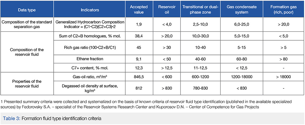 • according to the criteria for identifying the type of reservoir fluid (Table 3), the samples under study are mostly defined as oil (57% of the criteria).