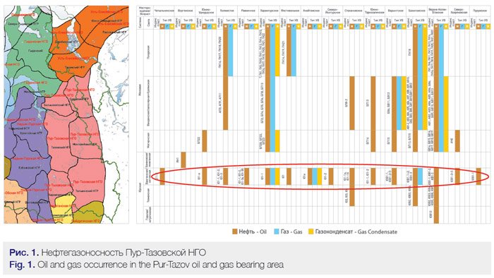 Data relating to the deposits discovered in the Pur-Tazov oil and gas bearing region (Fig. 1) suggest that the deposits located here have a high hydrocarbon potential and a significant oil bearing section. As Fig. 1 shows, the main prospects in this area are related to the Upper Jurassic complex with its complex structures.