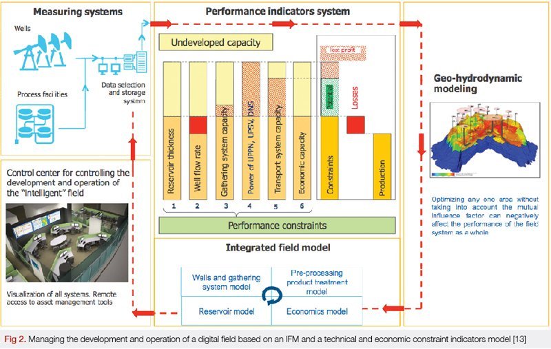 Rising costs associated with the development of new oil and gas fields in the face of fluctuating demand for hydrocarbons are forcing subsoil users to develop and implement new efficient technologies that reduce the cost of production. The remoteness of new fields from the existing infrastructure, the commissioning of new production targets and their connection to the existing field facilities system, as well as the harsh climatic conditions at play make the management of oil and gas assets more and more complicated. This requires optimal technological decisions aimed at eliminating risks that influence the effectiveness of management decisions. Computer-based information technologies supporting the oil and gas industry have been on the rise since the beginning of 1980 [1]. By the end of 2000, they had evolved into an array of individual software tools used for modeling reservoirs, piping networks, and oil and gas treatment facilities, as well as for financial and economic modeling of assets. The evolution of digital field technologies proceeded from simple to complex: from measurements, recording, analysis, and aggregation of field data to analytical systems that solve problems across the entire field, being linked together by a unified data gathering network.