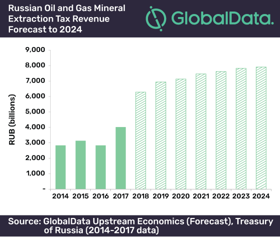 Will Scargill, Senior Analyst at GlobalData, commented, “With prices having remained over US$70/bbl in recent months, the combination of this tax change, production growth and a weakened ruble mean that government revenues from the oil and gas sector are forecast to exceed their 2014 peak in ruble terms.”