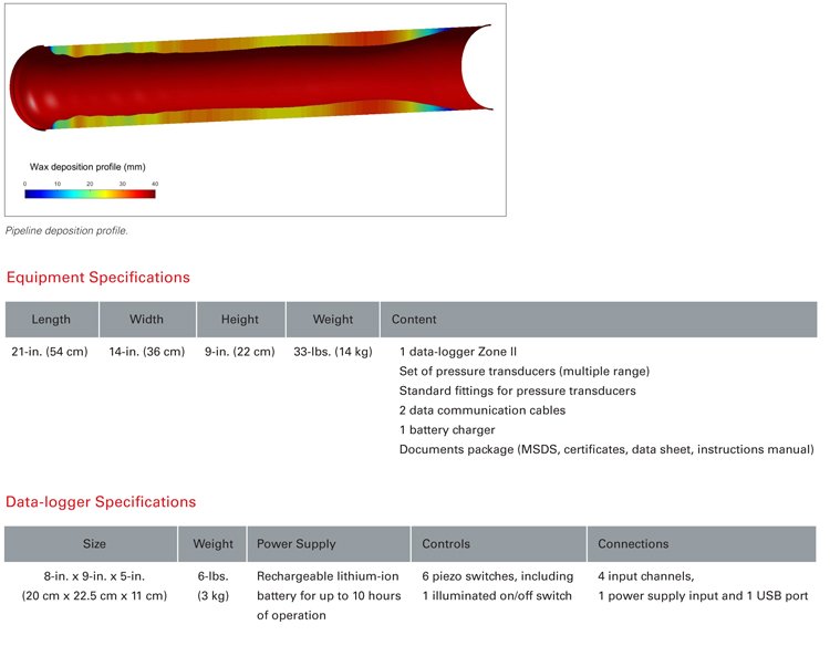 - Assess pipeline deposit thickness, volume and location to within 0.04-in. (1 mm) of thickness