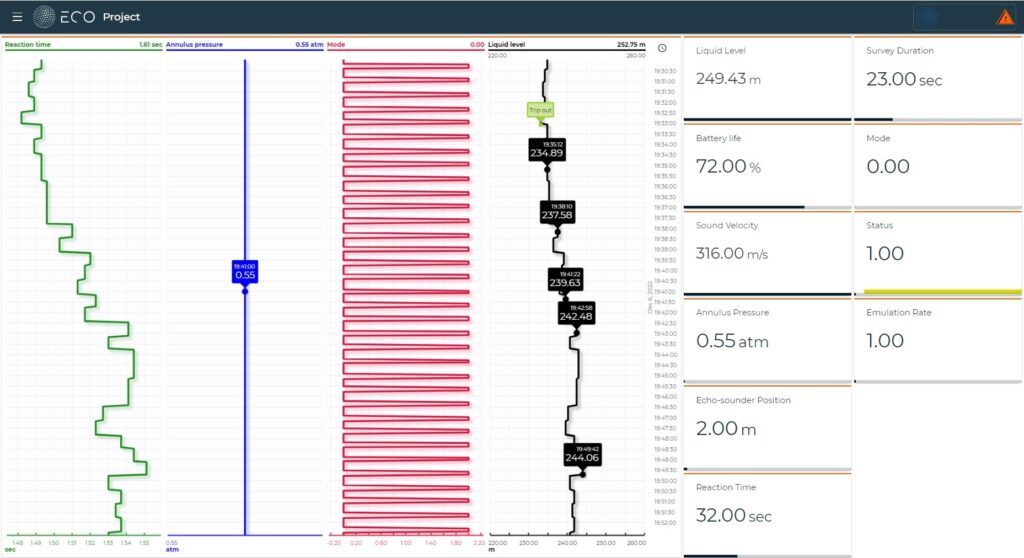 A standout feature of the ECO Digital Platform is its integration with innovative hardware technology, including an acoustic echo sounder. This allows for automated liquid level measurements to mitigate the risk of gas flow. The platform offers a highly adaptable system for continuous monitoring and control of fluid levels within the well. Users can set threshold values for automated warnings and immediate actions, thereby ensuring compliance with technological standards, and minimizing risks.