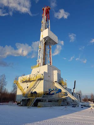 With optimized rig up and accelerated rig move capabilities, the 1500 horsepower, (320 metric ton hook load capacity) drilling rig is designed for pad drilling in Russia, Central Asia and the Caspian Sea Region at temperatures ranging from +45 to -45° C. The Kostroma train rig also incorporates an innovative rail system that allows the rig to move from well to well without rigging down, much like a train.