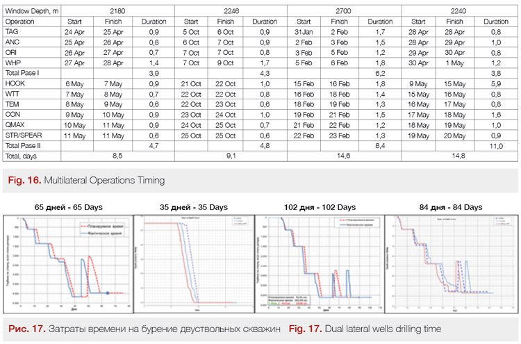 It is always an important question – how long it takes to drill and complete a multilateral well vs usual one. As you can see at the Figure 16, the extra operations specific to a multilateral junction are taking from 9 to 15 days. The whole well drilling time can vary from 35 days for a reentry multilateral to 105 days on new wells depending on laterals lengths and junctions depth (Figure 17).